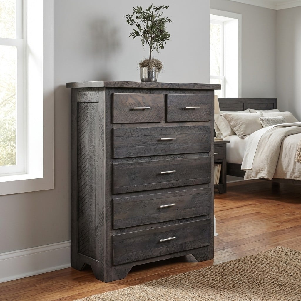 You deserve a bedroom designed especially for you. Create your perfect oasis with our solid-wood chests available in a wide range of wood types and stains. Click on any piece to select your wood, stain, and other features. Then, using our online visualizer you can view a preview of what your selections will look like. Don’t be afraid to try two-tone stains or bold colors, and mix and match from different sets. Create a set that is uniquely you. If you don’t see exactly what you want please reach out to us and we will work with you to bring your dream bedroom to life.