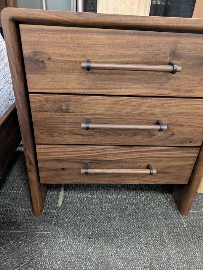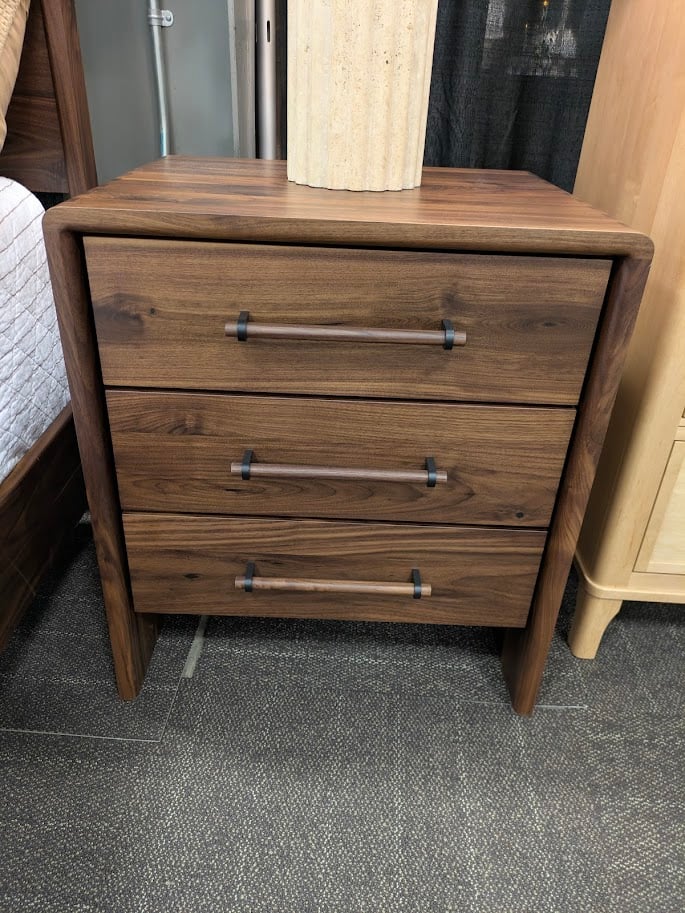 The Amy 3 Drawer Nightstand brings warm, modern style to your bedroom with its clean lines, rounded edges, and beautifully grained wood finish. Designed for both function and simplicity, it features three spacious drawers with sleek, metal bar pulls that offer easy access and a touch of contemporary flair.