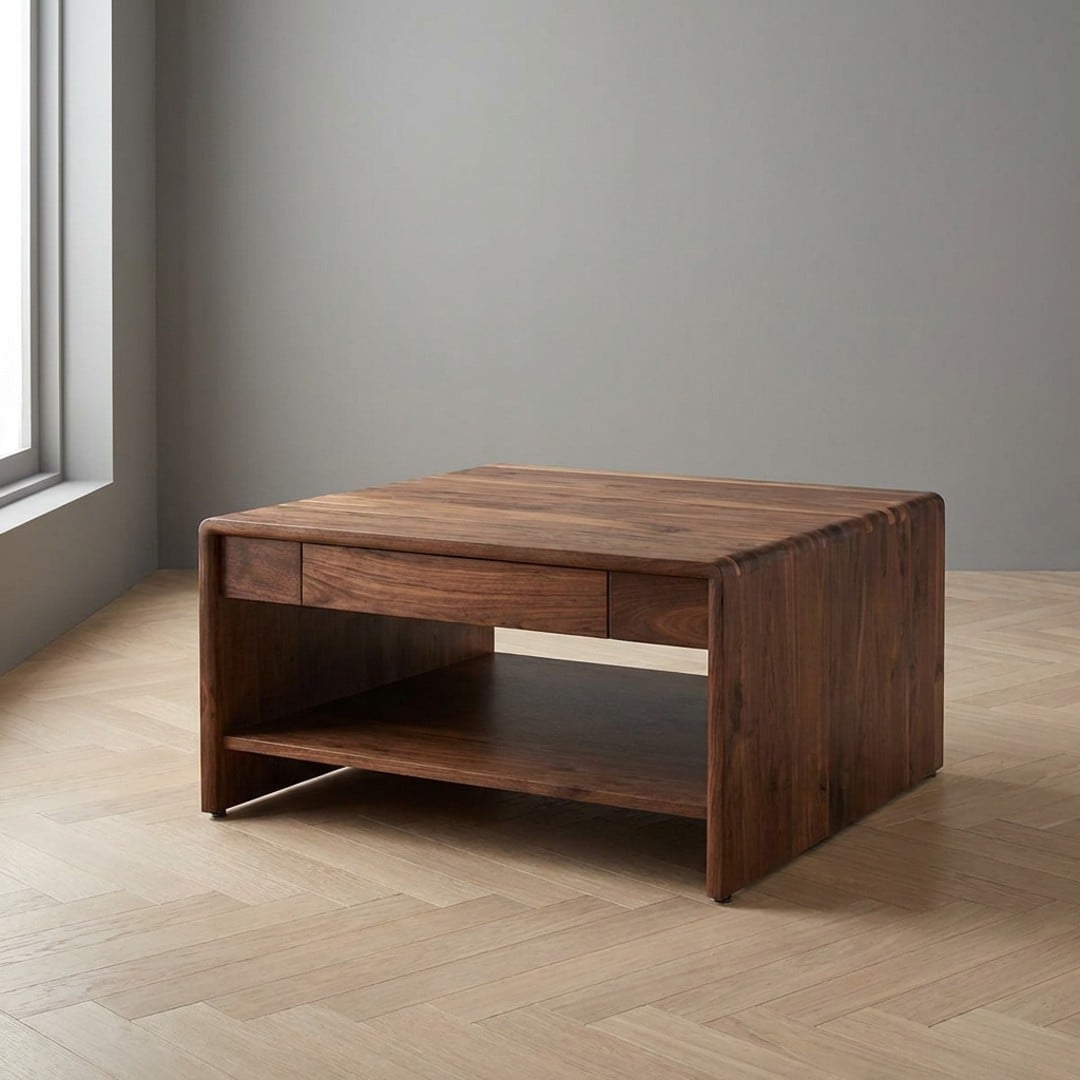 This square coffee table blends clean, modern design with the warmth and character of natural wood. Crafted with softly rounded corners and a seamless waterfall edge, it offers a smooth, sculpted look that feels both contemporary and timeless. Dimensions: 37″W x 37″D x 19″H