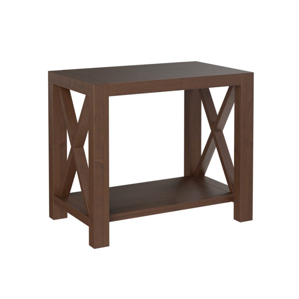 With a distinctive crisscross design on each side, the Aspen Chairside Table can look both classic and contemporary depending on stain and wood selection. Pair with the Aspen coffee, sofa, and end tables for a complete living room set. Dimensions: 15”D X 24”W X 22”H.