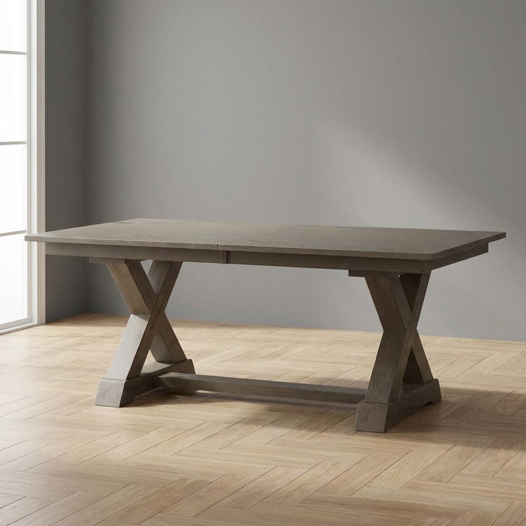 Bring timeless warmth and craftsmanship to your dining space with this beautifully balanced dining table set. Featuring a distinctive X-style trestle legs, this design blends classic farmhouse character with clean, modern lines. The generously sized tabletop offers plenty of room for everyday meals and special gatherings alike, while the sturdy base provides lasting stability and visual interest.
