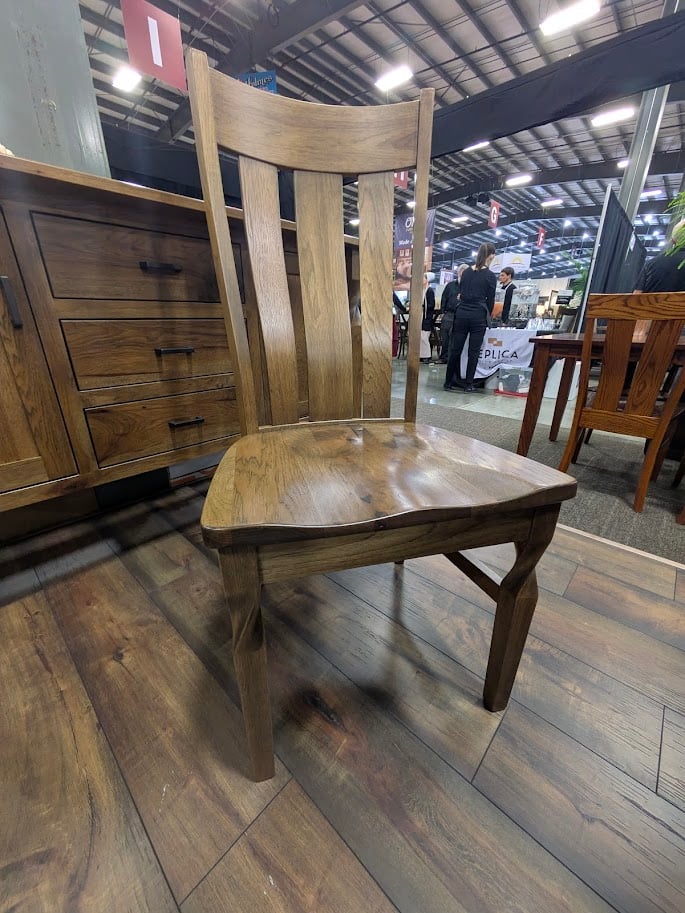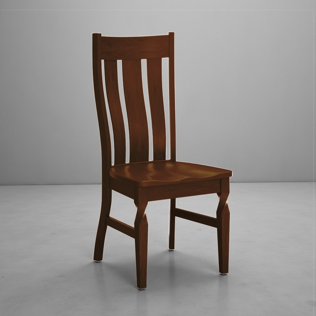 The Brynn Side Chair brings classic comfort with a refined, handcrafted touch. Built from solid hardwood by Amish artisans, it features a sculpted seat, gently curved back slats, and gracefully twisted legs that add just the right amount of character. It is also available with an armrest. Dimensions: 19″ wide, 17.75″ deep; available in 38″ or 42″ high.