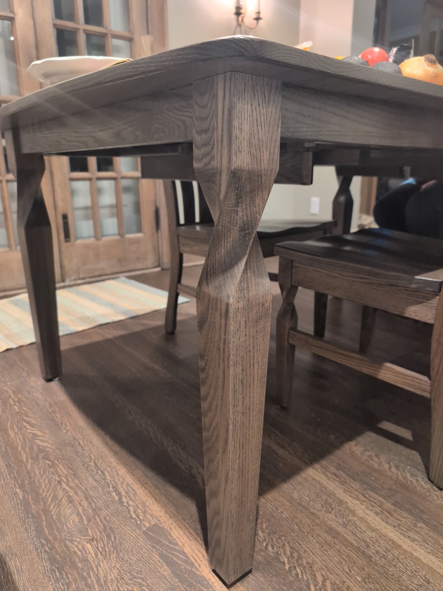 The Brantley Dining Table brings warmth and character to any dining space with its bold twisted legs and beautiful solid wood top. Handcrafted by Amish artisans from customizable wood choices, it’s built to last and fits into any space, contemporary or transitional. Features two leaves, with overall dimensions of 42″W by 66″D. Two toned stain available upon request.