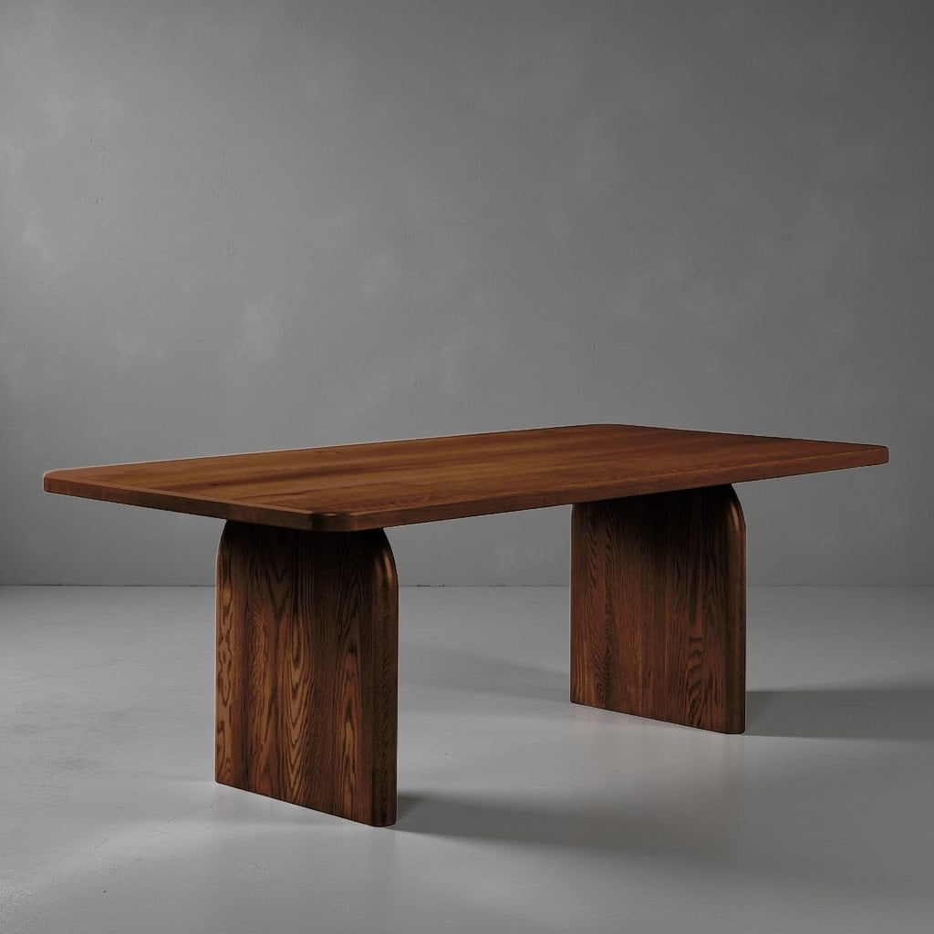 The Darcy Trestle Table brings a traditional feel to your dining space with its bold, rounded trestle base and smooth, softly curved tabletop. Handcrafted from solid hardwood by Amish artisans, it’s a perfect balance of warmth and modern design. Whether paired with a bench or upholstered chairs, the Darcy is made to be both functional and stylish. Also available with an 18″ leaf extension to the ends.