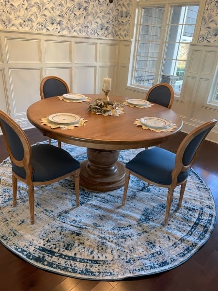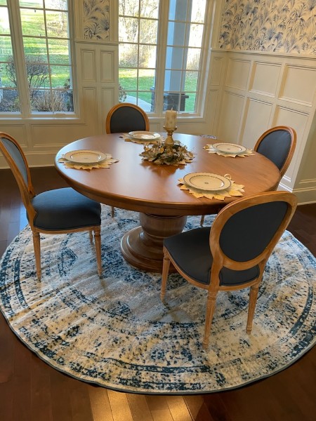 Your classic table, just a stout solid base and a 1″ thick top. It’s perfect for an kitchen space as a solid top, or in your dining room with 2 leaves so it can expand to fit your guests. The central column is 13″ wide when the table top diameter is 48″ or 54″ with a 24″ base plate, and 15″ wide with a 26″ base plate for a 60″ table.