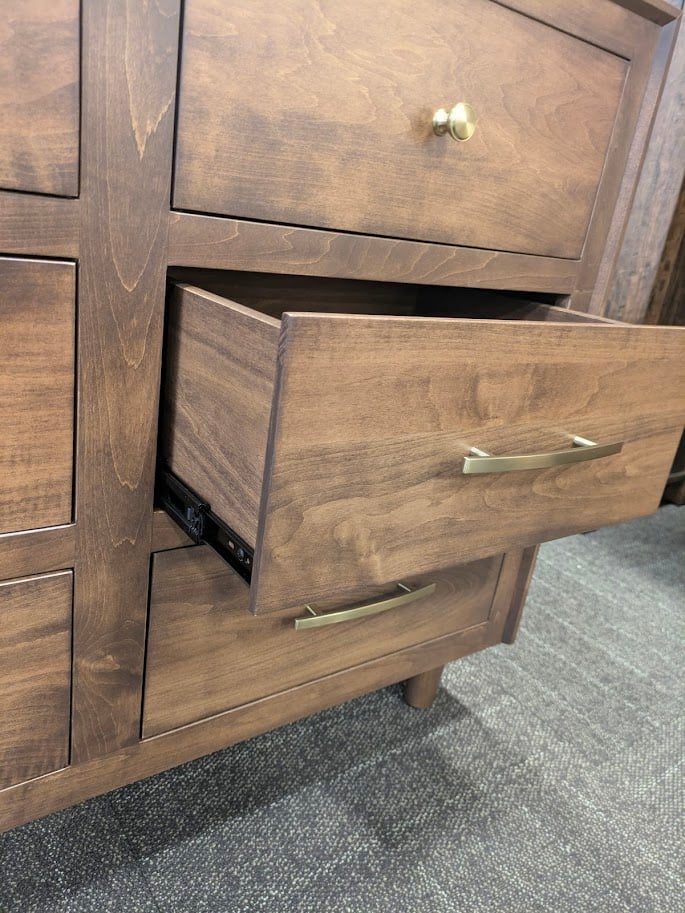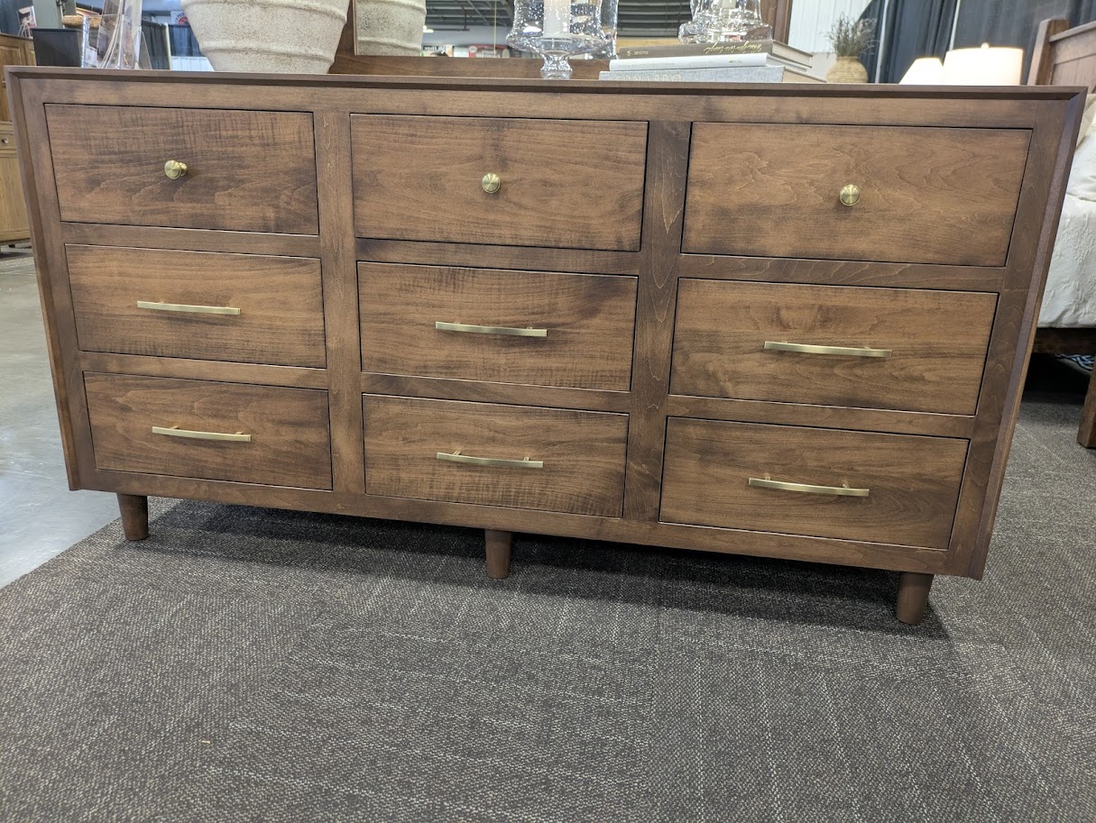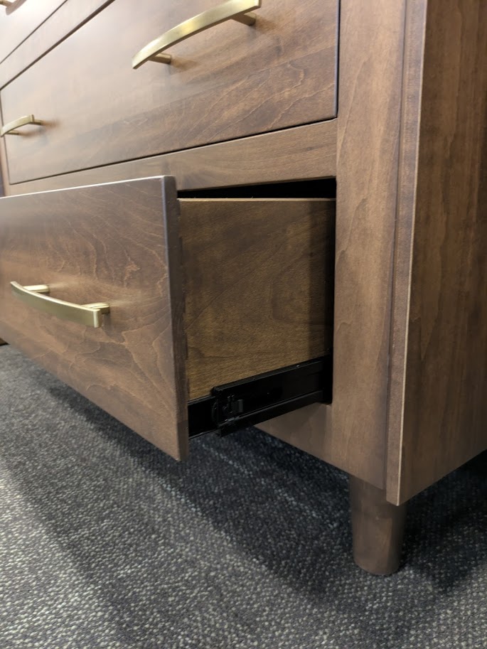 Tapered legs and flush drawer faces present a clean aesthetic for you to rest your mind and body. Standard features include dovetail drawer-box construction and soft close slides. Dimensions: 68” Wide x 18 1/2” Deep x 46 1/2” High. Lifestyle photo is shown made from Brown Maple wood with Sealy stain.
