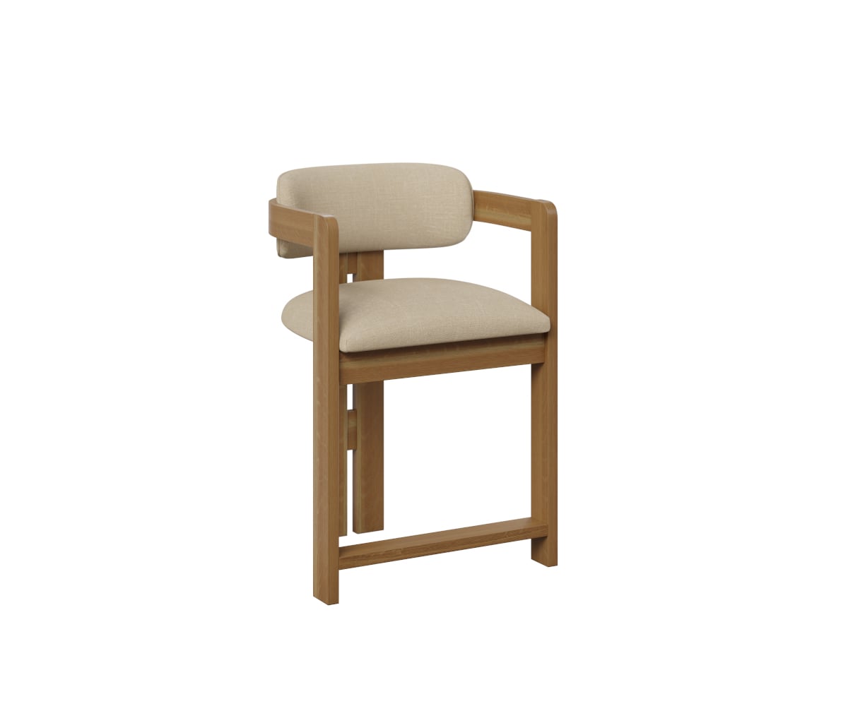 This artfully constructed chair shows that you don’t have to sacrifice style for quality. Solid wood is bent into a comfortable curve on top, and then run parallel downwards as back legs to create a very modern profile. Counter Height Chair: 22″ W, 20″ D, 36″ H.  24″ to seat; Bar Height Chair: 22″ W x, 20″ D, 42″ H. 30″ to seat.