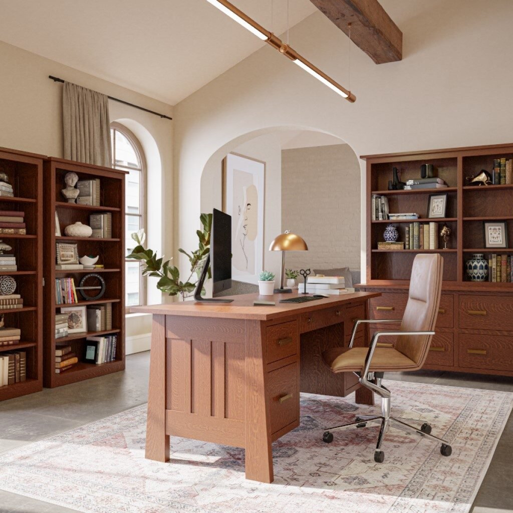 All our furniture is built from 100% domestically sourced solid wood by Amish craftsman in the American Midwest. Wood options include Oak, Brown Maple, Hard Maple, Cherry, Hickory, Elm, Quarter Sawn White Oak, Walnut, and rustic varieties. Each piece is designed to last generations and comes with a lifetime warranty.