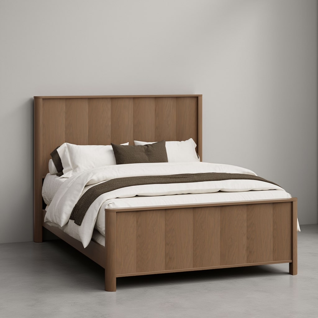 The Madeline Bed brings quiet elegance and warmth to the bedroom with its clean lines, paneled headboard, and softly rounded edges. Crafted from solid hardwood by Amish artisans, it combines modern simplicity with timeless craftsmanship. The vertical panel detailing on both the headboard and footboard adds subtle texture and depth, making it a versatile centerpiece for a range of interiors—from minimalist to cozy and classic. The headboard is 54″ high.
