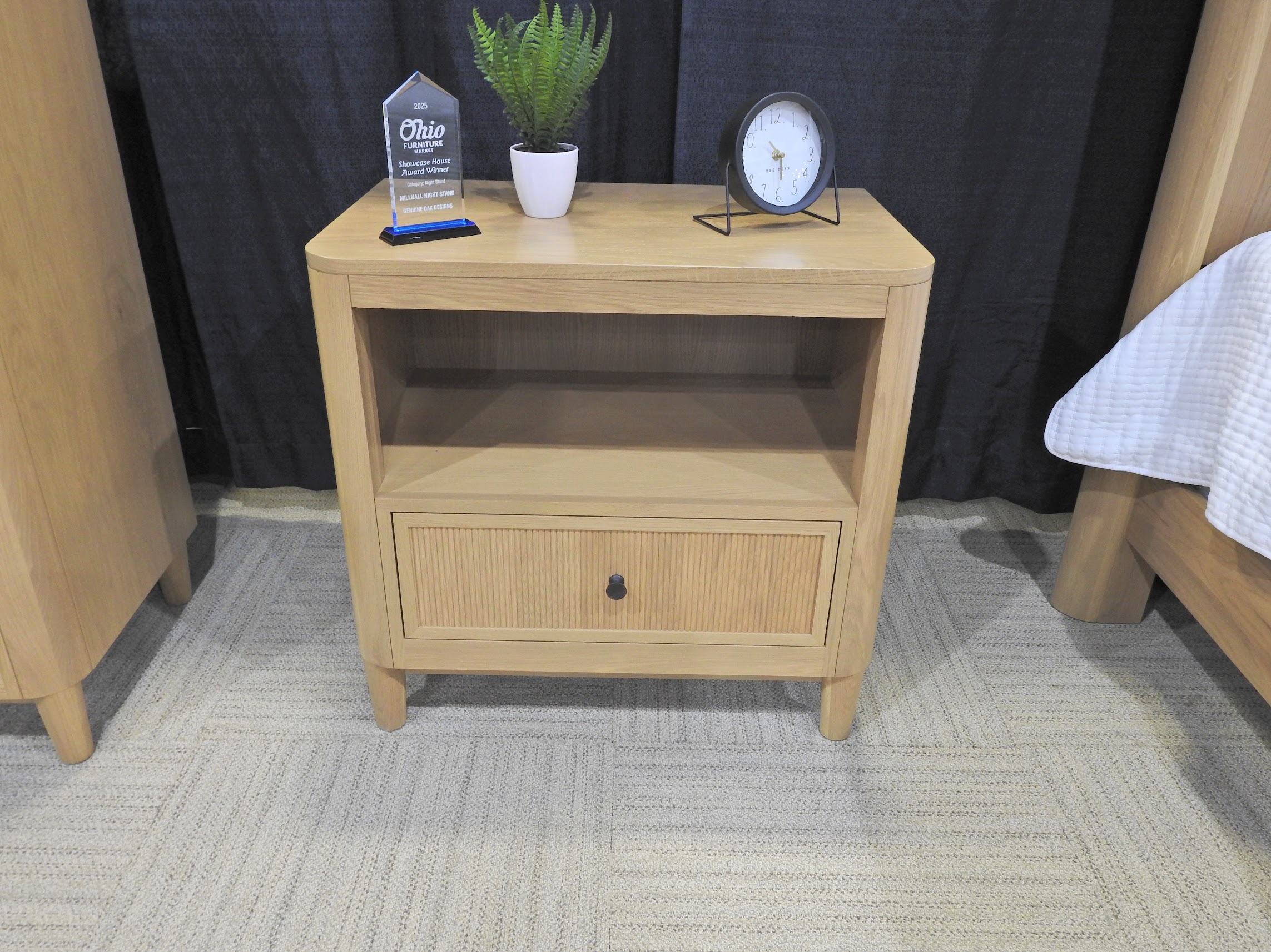 The Madeline Nightstand brings warmth and versatility to your bedside with its clean silhouette, rounded edges, and blend of open and closed storage. A reeded drawer front adds a refined touch of texture that pairs beautifully with the rest of the Madeline collection. Handcrafted from solid hardwood with tapered legs and dovetailed drawers, it’s designed to work effortlessly alongside the Madeline Bed and Dresser for a perfectly coordinated bedroom. The width is 29.75″, the depth is 18.625″, and the height is 28.25″.