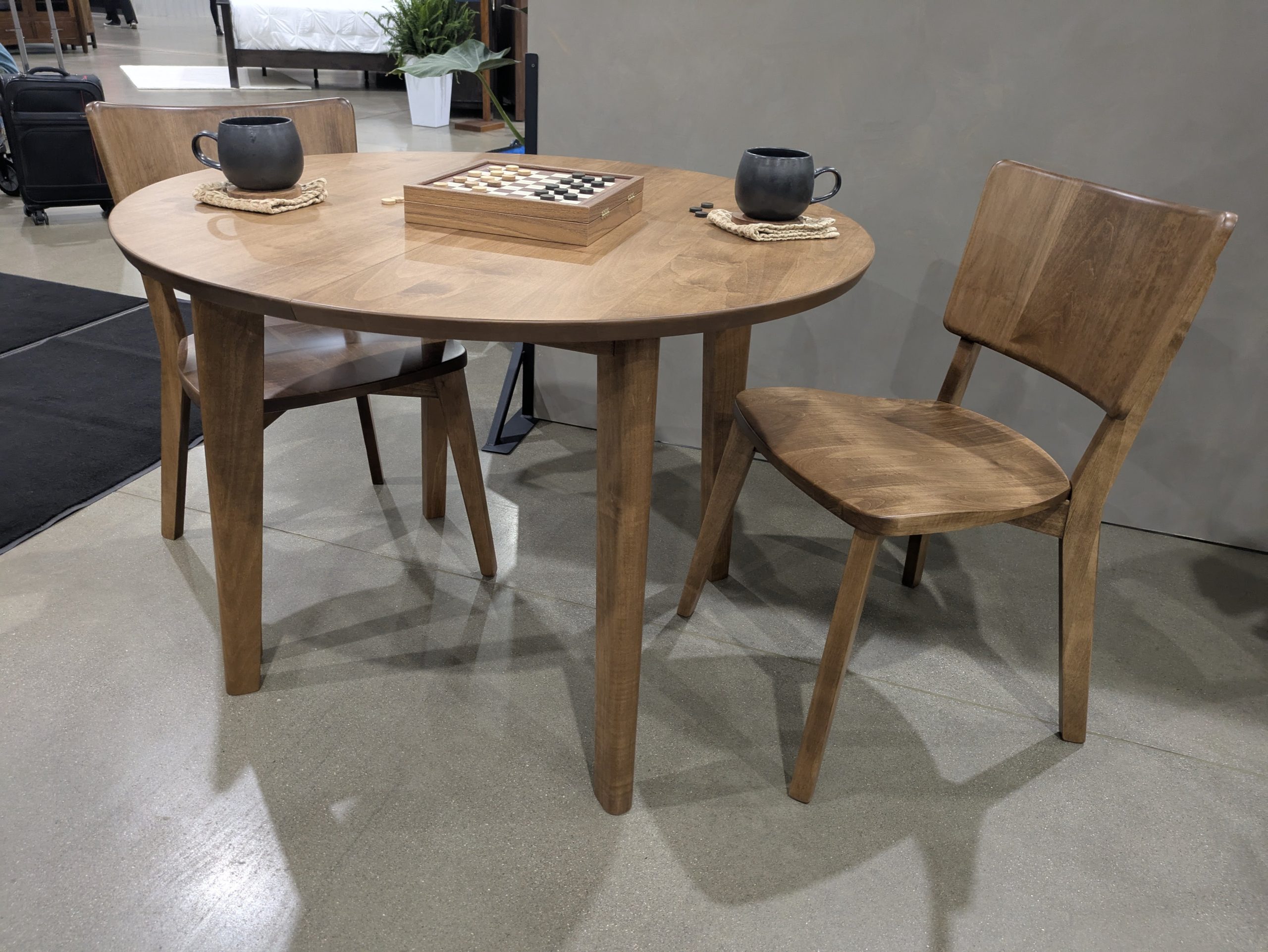 The Wren Table is the perfect mix of cozy and contemporary, featuring a 1″ thick round-shaped top with an inverted edge that adds a subtle, stylish detail. With its softly tapered legs and warm solid hardwood construction, it’s just right for breakfast nooks, small dining areas, or a quiet game night. Dining height is 26″ from floor to skirt.